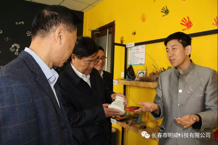 2019年4月23日,中國高等教育學(xué)會(huì )第六屆理事會(huì )會(huì )長(cháng)瞿振元一行到中國?吉林東北亞文化創(chuàng )意科技園內(企業(yè)長(cháng)春市明威科技有限公司、吉林省迪思科技有限公司、愛(ài)探索3D創(chuàng )客中心)參觀(guān)調研,由吉林省東北亞文化創(chuàng )意科技園黨委副書(shū)記于淼、長(cháng)春建筑學(xué)院校長(cháng)助理/文化創(chuàng )意產(chǎn)業(yè)學(xué)院黨總支書(shū)記周勇、文化創(chuàng )意產(chǎn)業(yè)學(xué)院院長(cháng)張鵬翔、健康產(chǎn)業(yè)學(xué)院院長(cháng)劉玉和、人工智能學(xué)院院長(cháng)吳佼陪同調研,我司董事長(cháng)楊利民同志進(jìn)行參觀(guān)講解。