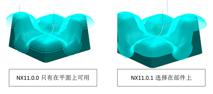 今天給大家介紹一個(gè)NX11.0.1版本中固定軸輪廓銑削模式下驅動(dòng)方法為區域銑削選擇陡峭非陡峭時(shí)的更新內容。