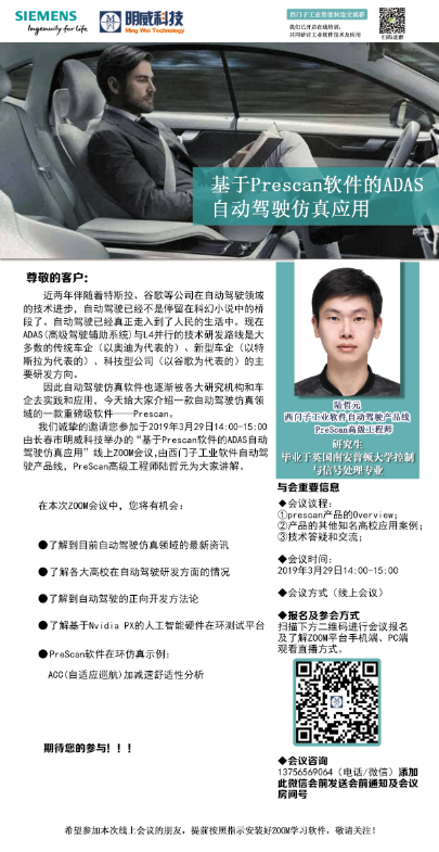 主講嘉賓:陸老師-西門(mén)子工業(yè)軟件自動(dòng)駕駛產(chǎn)品線(xiàn),PreScan高級工程師陸哲元,研究生畢業(yè)于英國南安普頓大學(xué)控制與信號處理專(zhuān)業(yè)。