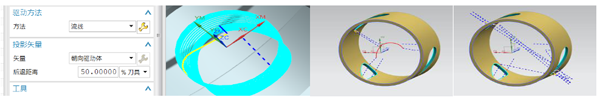 ? 投影矢量“朝向直線(xiàn)” 和“刀具軸”的內部后退規則