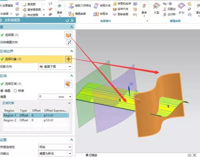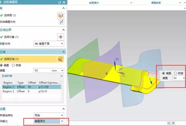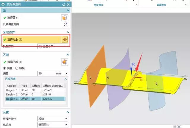 選擇黃色的面為被偏執的面,然后選擇藍色的面為區域邊界