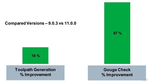 2.1與9.0.3相比刀路計算速度提升18%,過(guò)切檢查提升67%(包含IPW編程方式)。