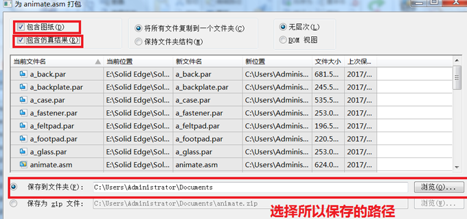 3.按需求選擇打包是否包含圖紙和仿真結果,并確定保存的路徑。