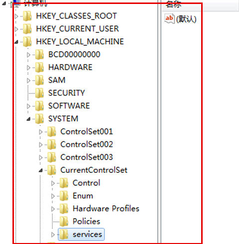 4、運行regedit,選擇HKEY_LOCAL_MACHINESYSTEMCurrentControlSetServices,滾動(dòng) 這個(gè)列表,刪除所有Oracle入口。