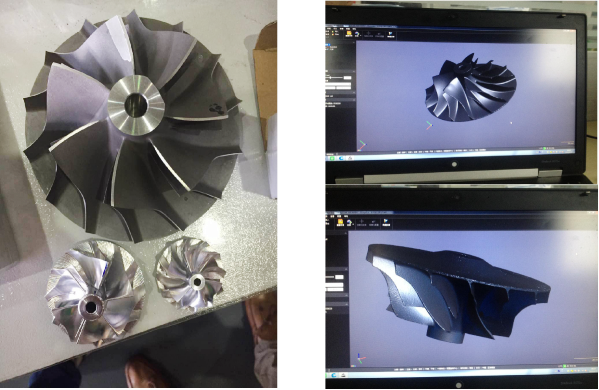 葉輪由于葉片曲面較多,傳統掃描方式十分麻煩,因此客戶(hù)最終采用了行創(chuàng )手持式三維掃描儀